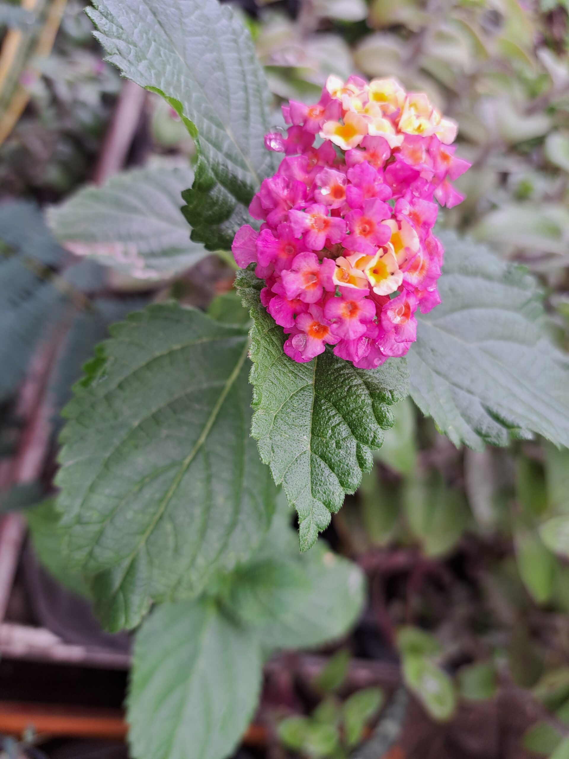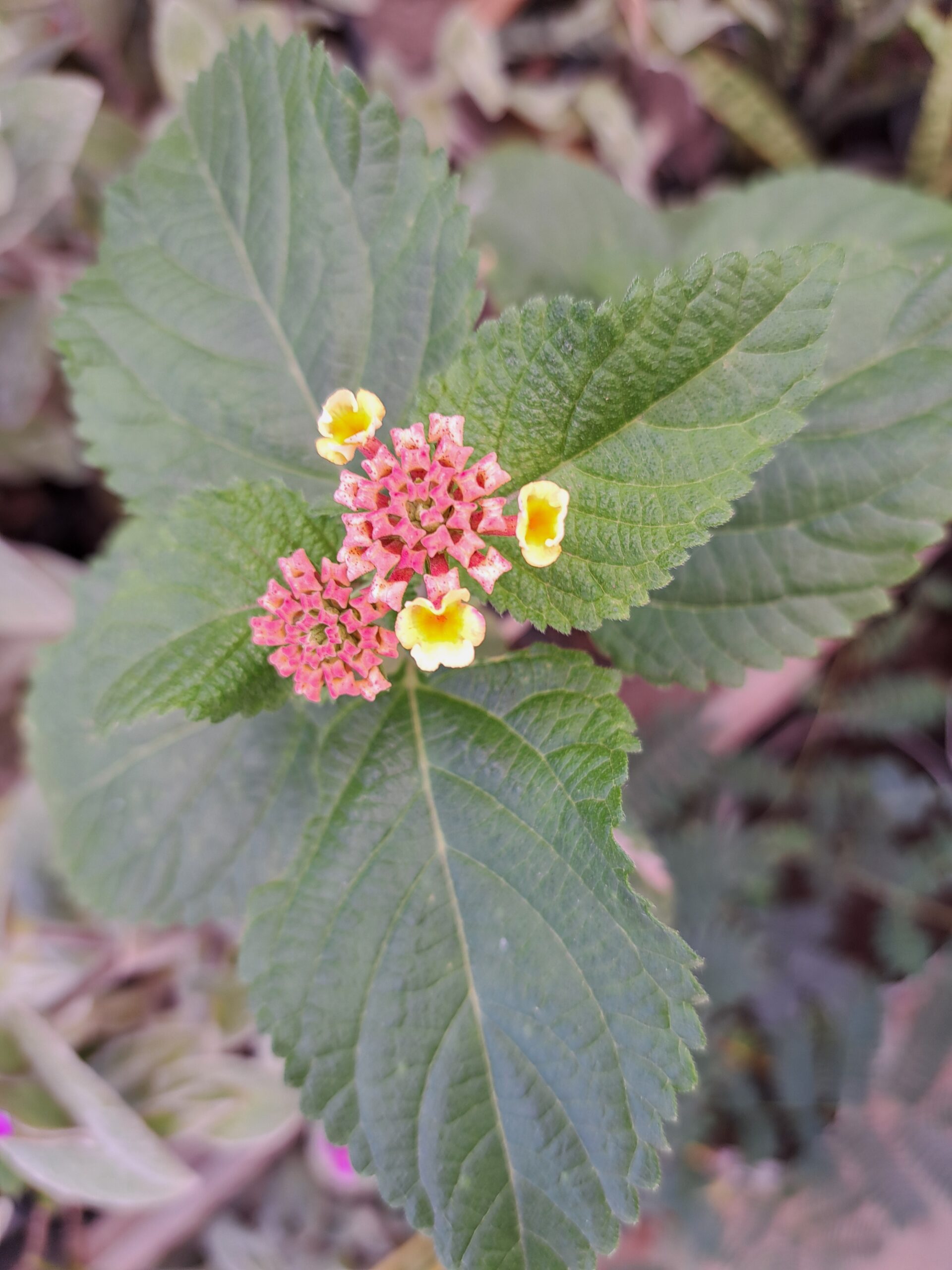 Lantana camara L, llamada comúnmente lantana, flor de fuego o cinco negritos entre otros nombres vernáculos. Es un arbusto de follaje perenne de 1,5 a 3m de altura. Es nativa de las regiones tropicales de América.